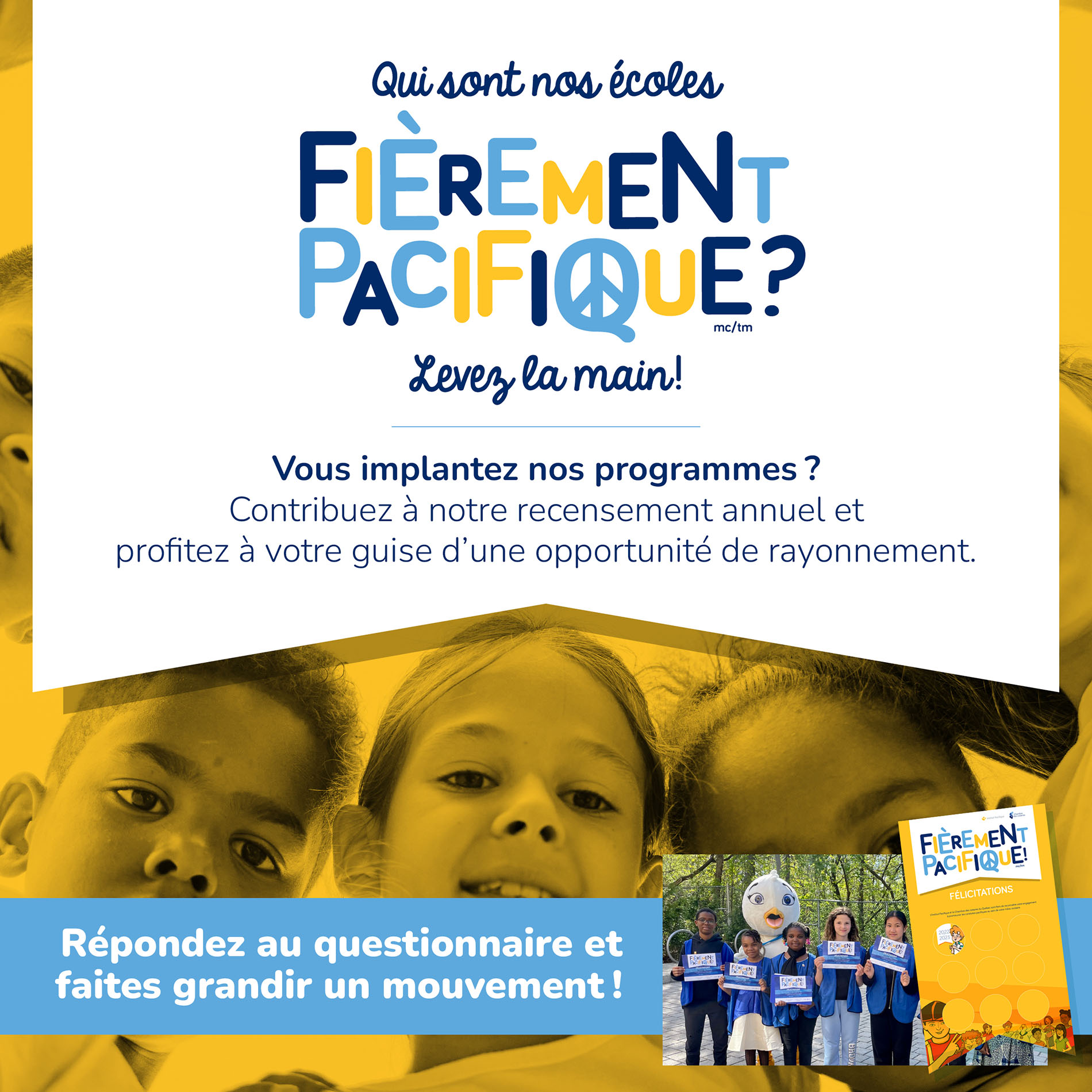 Implanté dans plus de 400 écoles, Vers le pacifique apprend aux élèves du préscolaire et du primaire à développer des relations saines et à résoudre leurs conflits pacifiquement.